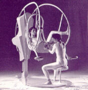 The holding frame consists of a double spiral which the mother can grip at any height. This fixes the thoracic girdle, increasing the tension in the entire anterior trunk musculature and reinforcing the action of the stomach muscles and diaphragm that are used during bearing down.