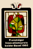 The artist - Paul Degen - and the entrepreneur - Michael Bischof - have been presented with the Basel Innovation Prize. They received their award for the invention and development of the Birth Wheel from Werner Spitteler, the Basel-Land Minister of Economics, at a ceremony held on November 19, 1992.